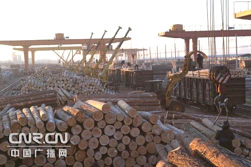 滿洲里口岸應對運輸壓力增加落地原木(圖)