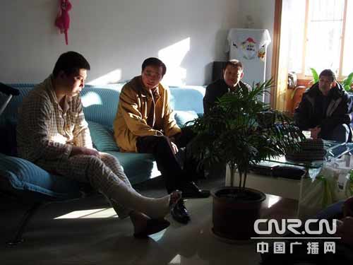 中廣網(wǎng)呼和浩特2月4日消息(記者鄭穎 通訊員張強、周軍)2008年2月2日,呼和浩特鐵路局工會主席曲永堂一行在包頭鐵路公安處領導的陪同下代表自治區(qū)、鐵路局看望了因公負傷的自治區(qū)勞動模范、全國優(yōu)秀人民警察張佩寧同志,在送去了慰問金和慰問品的同時也帶去了組織的關心和問候。