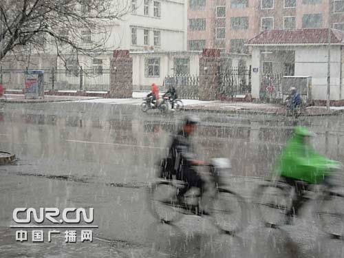 中廣網呼和浩特3月22日消息(記者文偉 通訊員任艷軍) 22日早晨8點多,突降大雪,大雪如鵝毛般從天而降。記者從內蒙古氣象局了解到:此次降雪從巴彥淖爾市及以東地區普遍有小雨或雨夾雪。其中,鄂爾多斯市、包頭市南部、呼和浩特市、烏蘭察布市南部、錫林郭勒盟西部有小到中雨或雨夾雪。東北部地區有中雨夾雪或雪。阿拉善盟西部有揚沙或浮塵天氣。