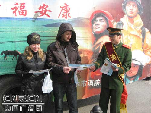 中廣網(wǎng)呼和浩特3月29日消息(記者鄭穎 通訊員王軍海)為提升全社會(huì)的火災(zāi)防控能力,確保消防宣傳不留死角,擴(kuò)大消防宣傳教育覆蓋面。滿洲里市消防特勤大隊(duì)針對本轄區(qū)俄羅斯入境人員流量大、逗留時(shí)間長的實(shí)際情況,印制俄文版消防安全宣傳單發(fā)放到俄羅斯入境人員手中,提高了俄羅斯入境人員的消防安全意識。