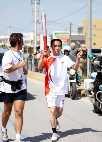 全二平今年35歲,這是他第一次出國,以前最遠(yuǎn)就到過北京,還是為了參加奧運火炬手的活動。26日,全二平獨自乘機(jī)前往雅典,在法蘭克福轉(zhuǎn)機(jī)時,遇到了語言障礙,好在遇上了一個國內(nèi)來的報社記者,順利到達(dá)雅典。