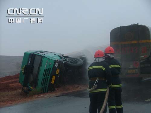 中廣網(wǎng)呼和浩特4月20日消息(記者鄭穎 通訊員李成軍)4月19日16時(shí)43分,內(nèi)蒙古伊旗消防大隊(duì)接到報(bào)警電話,阿四線6公里處一甲醇車行駛中緊急避險(xiǎn),翻進(jìn)公路旁排水溝中,罐體內(nèi)甲醇泄露。