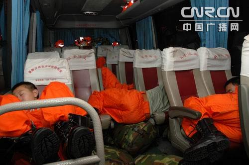 15日凌晨零點(diǎn)20分,救援隊(duì)進(jìn)入綿陽(yáng)市區(qū)。在市區(qū)公路兩側(cè),隨處可見(jiàn)市民搭建的臨時(shí)帳篷,有的把私家車(chē)開(kāi)到路邊空曠地帶,支起防雨布休息,有的干脆在馬路邊席地而睡。隨著汽車(chē)的快速前進(jìn),官兵們的心情就越發(fā)不平靜,立即趕赴災(zāi)區(qū)的愿望也就更加迫切。看在眼里,急在心中,恨不得馬上趕到震中災(zāi)區(qū),去幫助那里那些無(wú)助的群眾。