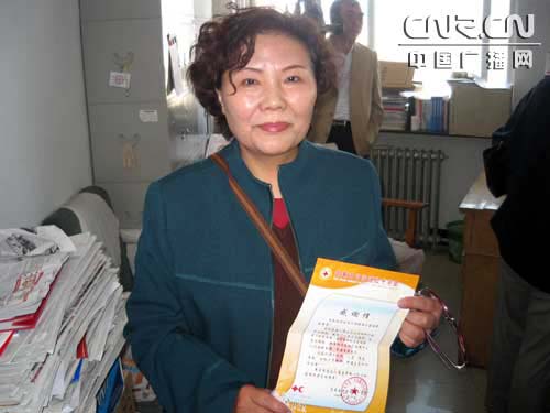 記者在現場遇到一位已經退休的臧憲麗女士,她告訴記者自己是代表82歲的老父親和77歲的老母親來奉獻愛心。二老讓臧女士捐出了他們剛剛領到的全部敬老金。