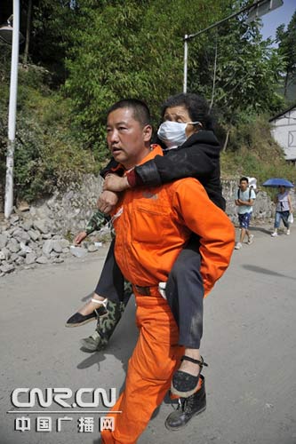 內蒙古消防員救援隊5月14日來到災區進行救援。目前,救援隊的工作重點轉移到救助傷員上。