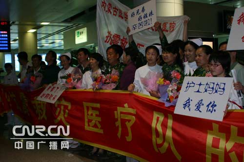 中廣網呼和浩特5月28日消息(記者鄭穎 實習記者張楠)5月27日晚21時,內蒙古第一批赴四川抗震救援醫療隊部分隊員乘坐CA4167航班從成都抵達呼和浩特。此外,還有16名醫療隊員將乘醫療救護車于近日返回。