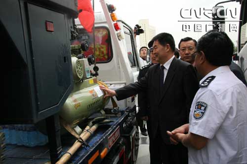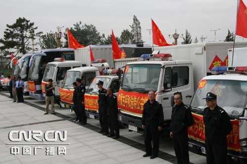 呼和浩特市公安局局長顏炳強:“我們這次又去了140人,到彭州市。在都江堰以東大概60多公里的位置上,這也是一個重災區(qū)。主要是執(zhí)行維護社會治安的問題。公安部從鍛煉特警部隊的角度出發(fā),要求各地的支援抗震救災的特警部隊全部以‘摩托化開進’的方式奔赴前線。我們這么遙遠的路程用車隊形式開進是耗費很大的精力的,但是這是一種特種部隊機動作戰(zhàn)的一種形式。通過遠程支援作戰(zhàn)來鍛煉我們隊伍的組織能力、指揮能力、協(xié)同能力、保障能力。到達現(xiàn)地以后,還要檢驗我們的作戰(zhàn)能力。我們這次攜帶的東西,除了帳篷和長期堅持時人們需要使用的一些保障物品以外,我們還有最先進的通訊設(shè)備,最好的執(zhí)勤設(shè)備等。這樣的話我們?nèi)ネ瓿珊笃诘娜蝿帐菦]有問題的。”