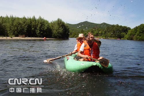 中廣網扎蘭屯7月22日消息(記者文偉、通訊員紀明國) 內蒙古扎蘭屯市舉辦的2008扎蘭屯第五屆雅魯河漂流節于7月21、22日“開漂”。來自全國各地的200多名媒體記者和旅行社經理們整裝入水,劃漿蕩舟,頓時,歡呼聲、擊水聲響成一片,灑遍了雅魯河兩岸,“北國第一漂”變成了歡樂的海洋。沿岸秀美的自然風光,激情澎湃的雅魯河漂流,給人們帶來了享受自然、天人合一的無比歡樂和激情。