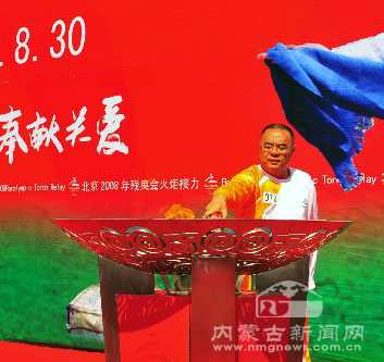 十一時許,隨著最后一棒火炬手陳國義高擎“祥云”火炬,抵達設在呼和浩特市體育場的火炬傳遞終點,并點燃圣火盆,北京殘奧會火炬呼和浩特站傳遞活動順利結束。