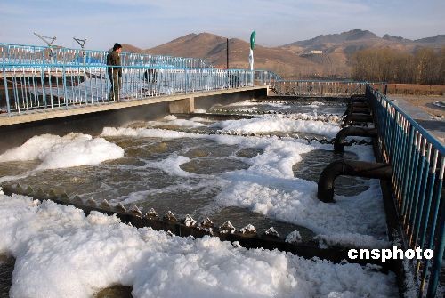 12月2日,內蒙古克什克騰旗經棚鎮污水處理廠工作人員正在爆氣池檢測曝氣量。孫國樹 攝