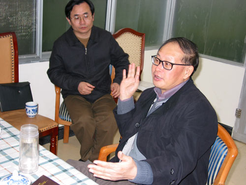金樹華同志(右)在2004年中央人民廣播電臺(tái)《西部紀(jì)事》策劃會(huì)上