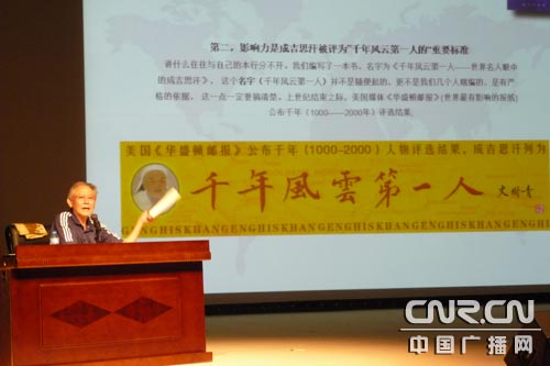 講座吸引了二三百名內蒙古各高校的學生和老師參加,現場座無虛席,許多沒有座位的學生甚至席地而坐。巴拉吉尼瑪先生此次講座的主要內容是從“影響”角度來認識成吉思汗。他認為:成吉思汗是世界上最大的成功者,他的最大的影響來源于最大的成功。沒有最大的成功就沒有最大的影響。他只所以最夠評上千年風云第一人,主要是依據他對世界的影響,可以說,讀懂了“影響”就基本上認識到了成吉思汗。