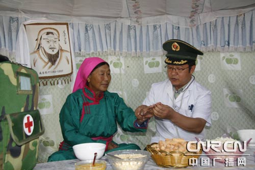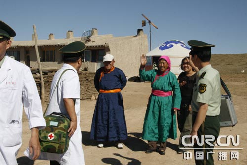遇到小分隊(duì)不能解決的問題,郭純總要叮囑他們?cè)诓幻Φ臅r(shí)候一定要去內(nèi)蒙古武警總隊(duì)醫(yī)院進(jìn)行檢查,他更向那些生活比較貧困的牧民承諾,到時(shí)候一定免費(fèi)為他們檢查。牧民朋友們總是拉著郭純?cè)洪L的手一遍遍的說謝謝,還有一些牧民嘴里念叨著“賽額木其(蒙古語,漢譯為好大夫)”。在小分隊(duì)走的時(shí)候,牧民總是送了一程又一程。