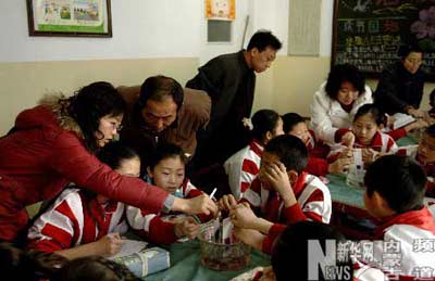 12月9日,來自呼和浩特市所轄區縣的小學教師在觀摩貝爾路小學的科學課。 呼和浩特市教育系統為提高全市900多所中小學和幼兒園的教學質量,開展了“校園教學開放日”活動。每周六選擇四所市內教學質量好的中學和幼兒園開展教學觀摩活動,為城鄉學校的教師提供觀摩交流的平臺,促進教學質量提高。活動開展9次以來,先后吸引了1.2萬余名教師參加。 新華社記者 于洋 攝