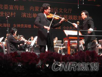 中廣網呼和浩特1月7日消息(記者鄭穎、劉俊霞) 1月6日晚在內蒙古政府禮堂“巨華 橋華世紀村2007年新年音樂會”成功舉辦。國際著名指揮家姜金一先生、國際著名小提琴演奏家呂思清先生攜手內蒙古民族歌舞劇院民族交響樂團為青城觀眾獻上了一道豐盛的音樂大餐!