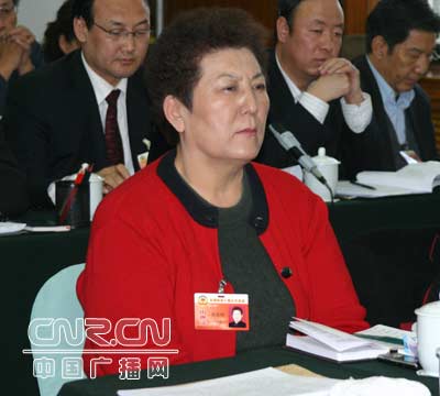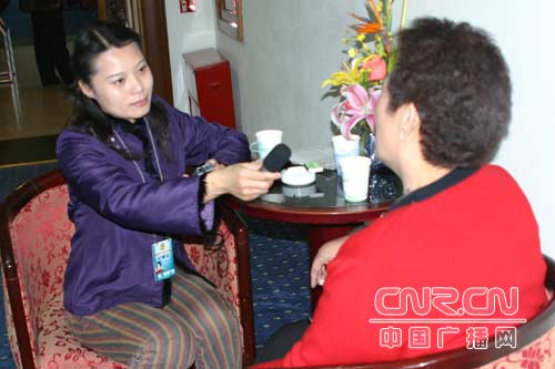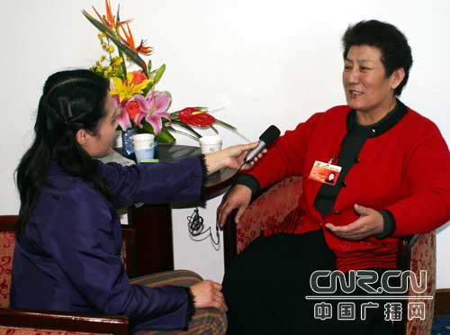 記者武艷玲采訪民族界委員德德瑪 (中廣網記者梓君 攝)