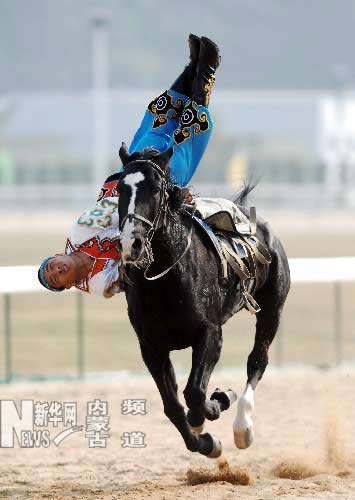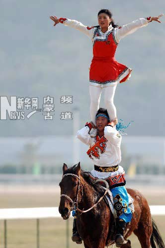 11月11日,內(nèi)蒙古馬術(shù)隊隊員在進行表演。當日,第八屆全國少數(shù)民族傳統(tǒng)體育運動會馬術(shù)表演在廣州馬術(shù)場舉行。 新華社記者沈橋攝