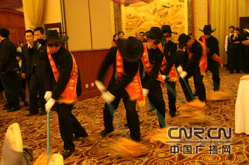 主辦方安排了精彩的文藝節(jié)目和精美的年夜飯,氣氛熱烈喜慶,部分進城務工青年代表也即興表演了節(jié)目。內蒙古、呼和浩特兩級領導把滿懷著真情的價值28萬元的新年衣物、電話卡和書籍贈送給了進城務人員,囑咐他們安心在呼和浩特過春節(jié)。活動中,湖南籍務工青年雷亞軍和內蒙古呼倫貝爾務工青年白靜一家人與家鄉(xiāng)親人進行了電話和視頻聯(lián)線拜年。