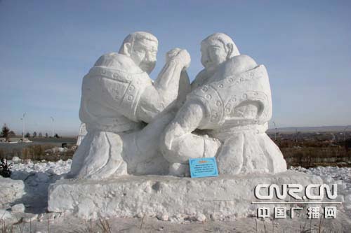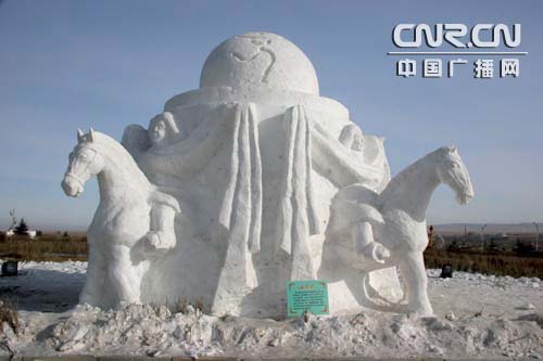 庫(kù)倫廟廣場(chǎng)的雪雕:射箭