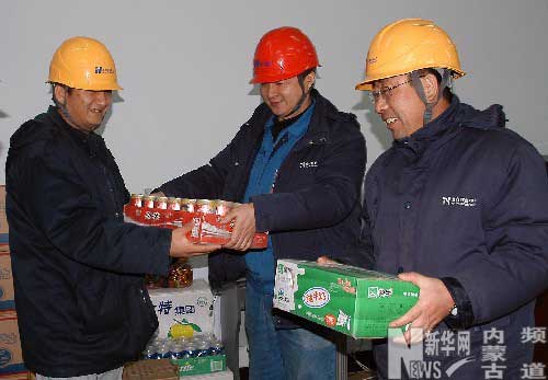 2月6日,中國華能集團內蒙古北方聯合電力有限公司上都發電廠副總經理李悅(中)慰問節日堅守發電車間一線技術人員。 春節期間,內蒙古電力系統五萬多名生產技術人員在發電、輸電車間一線堅守崗位,機組安全穩定運行,確保節日期間向東北、華北電網和京津唐地區安全送電。 新華社發(王建豐攝)