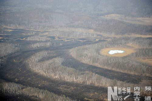 這是航拍的內(nèi)蒙古大興安嶺森林草原過火區(qū)(4月21日攝) 新華社記者張領攝