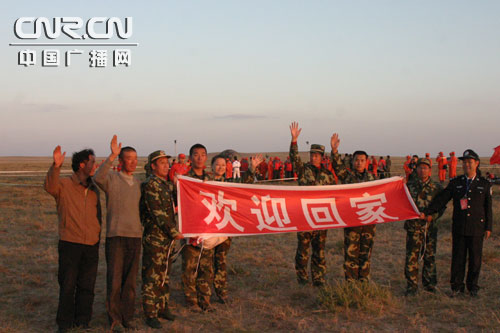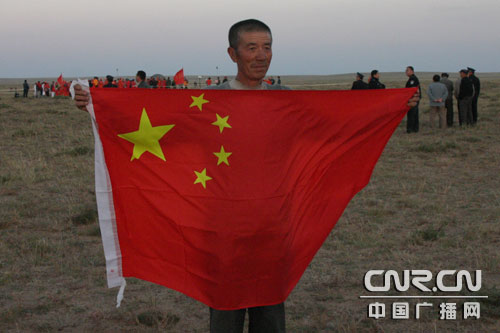 中廣網四子王旗9月28日消息(記者鄭穎 攝影馬立峰)“神舟”七號載人飛船平安降落在寧靜吉祥的阿木古郎草原上。阿木古郎草原兒女以各種形式熱烈歡迎“神七”平安回家。