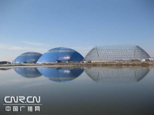 儲煤倉采用螺旋球點支撐鋼網(wǎng)架穹頂結(jié)構(gòu),并用彩鋼版封閉,體現(xiàn)生態(tài)環(huán)保無污染的特點