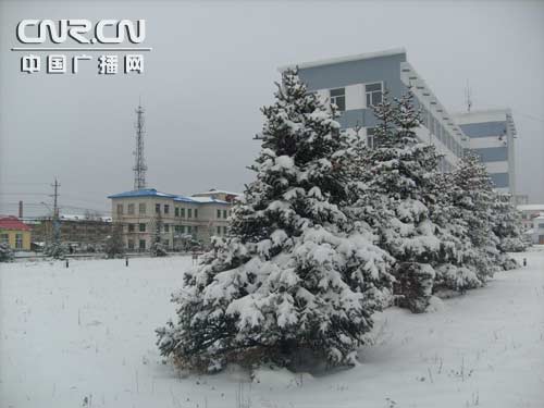 中廣網呼和浩特10月24日消息(記者鄭穎 通訊員李崇民)10月23日,內蒙古大興安嶺林區普降大雪。地上景物被大雪覆蓋,銀裝素裹。到下午16點,得耳布爾林業局地面積雪已達20厘米。