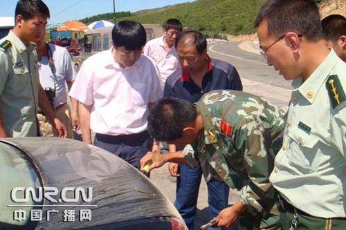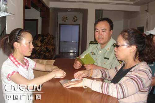 邊防官兵正在幫助臺灣游客聯系外事賓館
