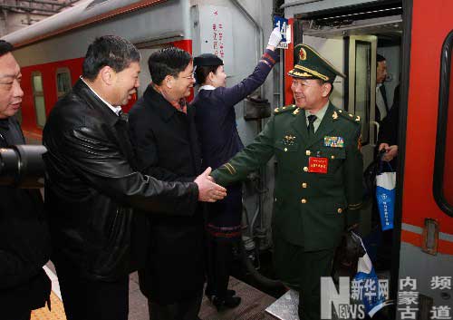 3月2日7時20分,出席十一屆全國人大二次會議的內蒙古代表團乘坐K90次列車抵達北京西站。 新華社記者 龐興雷 攝