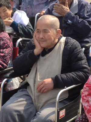 走進大門,就聽到隱隱約約的歌聲,老人們已經(jīng)早早坐在院子里,聽著蔡琴的《何日君再來》,享受著陽光的溫暖。鶴童敬老院有100多位老人,大部分老人生活不能自理,院子里的老人都坐在輪椅上。