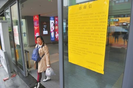 10月14日,市民李先生到成都蜀漢路一超市購物。貼在超市入口處的一封感謝信引起了他的注意。
