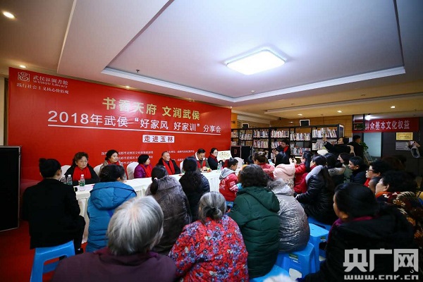 央廣網(wǎng)成都1月28日消息(記者韓民權(quán))為踐行社會主義核心價(jià)值觀,使文化融入百姓生活。1月27日,由成都市武侯區(qū)圖書館主辦的“書香天府?文潤武侯‘好家風(fēng) 好家訓(xùn)’分享會”第一站走進(jìn)成都武侯區(qū)玉林街道,將文化活動送到基層市民身邊。當(dāng)天,成都民俗學(xué)家與市民代表們分享了自己的好家風(fēng)故事,并將優(yōu)秀的家風(fēng)家訓(xùn)存入了“家風(fēng)銀行”。