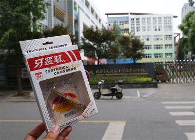 午時未到,各大小學門口零散站著幾位家長,周邊文具店、玩具店的生意比較蕭條。“老板,還有沒有牙簽弩?”面對成都商報記者詢問,新華路小學對面一家文具店的女老板有些警覺,不解地看著記者。“就是巴掌大小,上面拉上牙簽就可以發射出去的小玩具。”