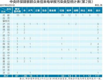 據(jù)了解,8日的群眾來電來信舉報投訴共反映117個環(huán)境問題,其中涉及水污染28件、大氣污染16件、土壤污染1件、生態(tài)破壞3件、垃圾污染33件、噪聲污染14件、油煙污染9件、揚塵污染1件、其他問題12件。