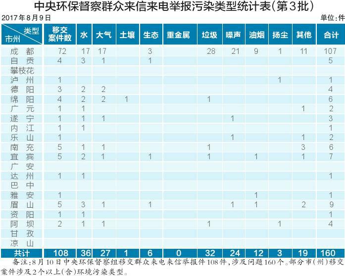 8月10日,中央第五環境保護督察組向我省移交第三批信訪件,共計108件,加上此前移交的120件信訪件,目前累計移交信訪件228件。