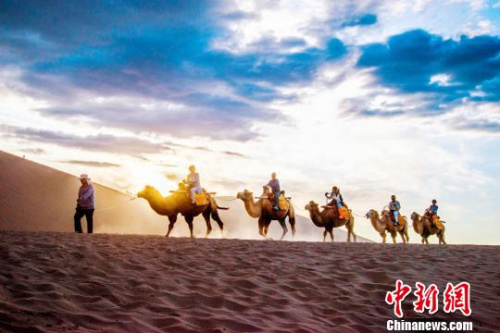 資料圖。圖為游客騎駱駝?dòng)^光游覽。 王斌銀 攝