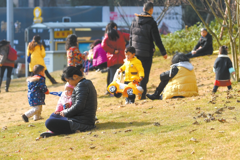 1月12日,成都又見藍天,太陽出來暖洋洋,市民忙曬太陽。