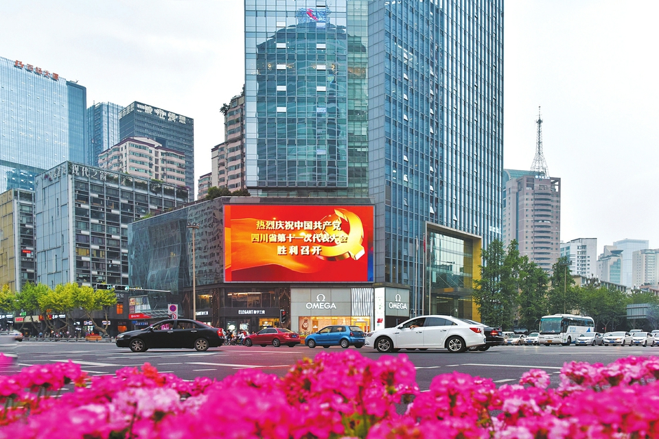 近日,成都街頭花團錦簇,為即將召開的中國共產黨四川省第十一次代表大會營造出濃濃的氣氛。