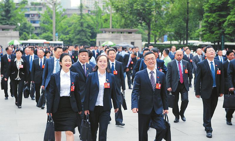 來(lái)自全省各條戰(zhàn)線的代表們肩負(fù)人民的重托出席會(huì)議。