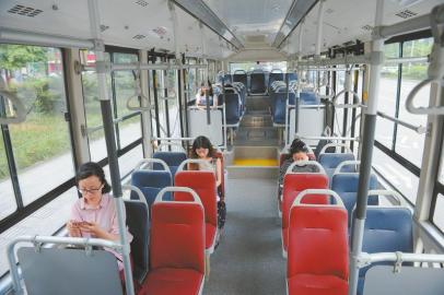 六月五日下午,即將從天華二路開出的D020定制公交上還有很多空位。本報記者肖雨楊攝