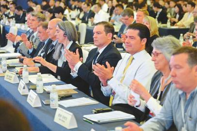 相聚 第四屆中美省州長論壇上,兩國各地嘉賓相聚成都。本版圖片由 本報記者 郝飛 攝