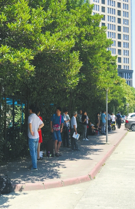 西南交大自主招生現場,家長們在烈日下焦急等待。