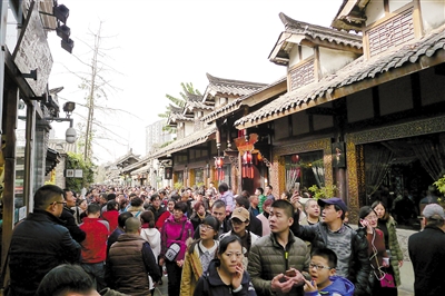 寬窄巷子游人如織 本報實習記者 張青青 攝