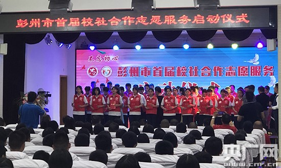 央廣網成都6月26日消息(邱櫟藝)25日,四川彭州市首屆校社合作志愿服務啟動儀式在成都石化工業學校南校區舉行。啟動儀式上,彭州市委常委、組織部長、社治委主任龔亞明致辭,彭州市委常委、宣傳部長米蘭佳為志愿服務隊授旗,與市級相關部門共同開啟了本次校社合作啟動儀式,入選彭州首屆校社合作的40名首批學生志愿者進行了集體宣誓。