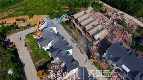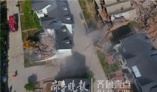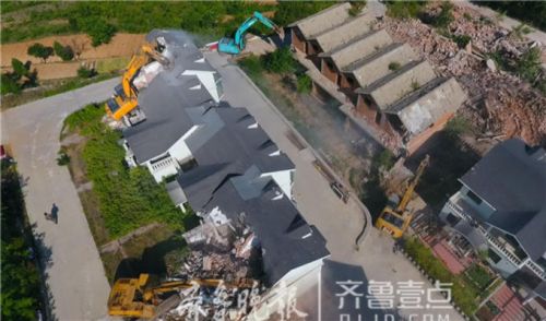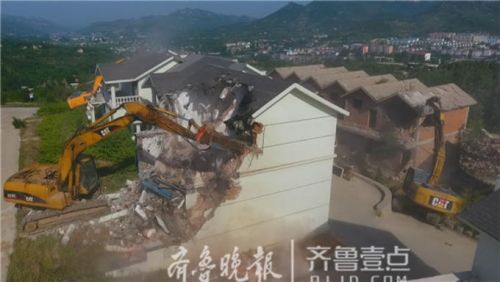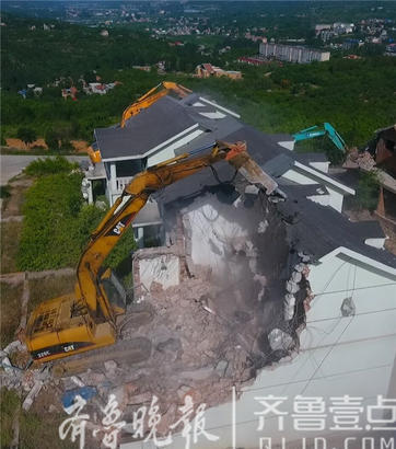 這里一共有46棟別墅,當天先拆除35棟,其余的11棟端午節前全部拆除,兩天前已提前斷水斷電。 齊魯晚報·齊魯壹點記者 周青先攝