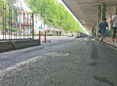 8月1日11點(diǎn)多,事故現(xiàn)場(chǎng)留下長(zhǎng)長(zhǎng)的剎車痕。 記者李尚隆 攝