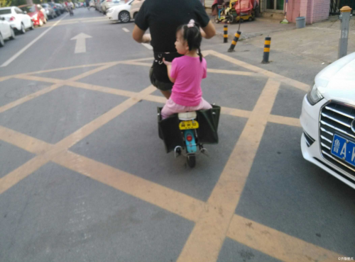 9月13日上午,網友“空瞳”向齊魯晚報爆料,其早上在濟南赤霞廣場散步時看到,一老爸將孩子的雙腳裝在電動車帆布鞍袋中送孩子去幼兒園上學,很是新鮮。