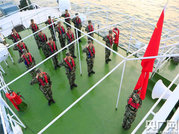 在外執行海上巡邏任務的艦艇官兵組織開展隆重升旗儀式,以實際行動向祖國母親獻禮,儀式結束后,官兵們又迅速投入到緊張的執勤工作中去。此外,該支隊官兵還利用執勤間隙,開展了“我為祖國站好崗,我為祖國送祝福”活動,制作了祝福卡片,進一步抒發了愛國情懷。