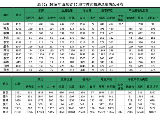 近兩年,省委省政府下大力氣解決大班額問題,新建學(xué)校,增加教職工,這對師范類高校畢業(yè)生來說是個重大利好。報告顯示,2016年通過山東省教師招聘考試共招錄教師26390人,較2015年的18570人增加7820人,上升42.11%。其中菏澤、濟(jì)寧、臨沂招聘人數(shù)位居前三位。
